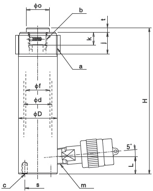 Kích thủy lực Osaka E5S12.7 trang bị ren đầu kích (ren ngoài a = M42x1.5, ren trong b = M20x2), 2 bulong chìm dưới đáy kích M6x10L, giúp thuận tiện gá đặt kết nối với đồ gá khi cần thiết.