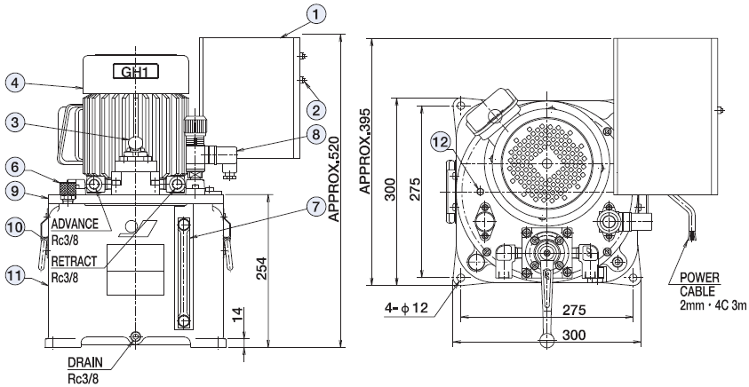Đầu ren chờ lắp phụ kiện, ống dây của bơm thủy lực Osaka GH1-D tiêu chuẩn Rc3/8 cho phép đấu nối nhanh, thuận tiện.