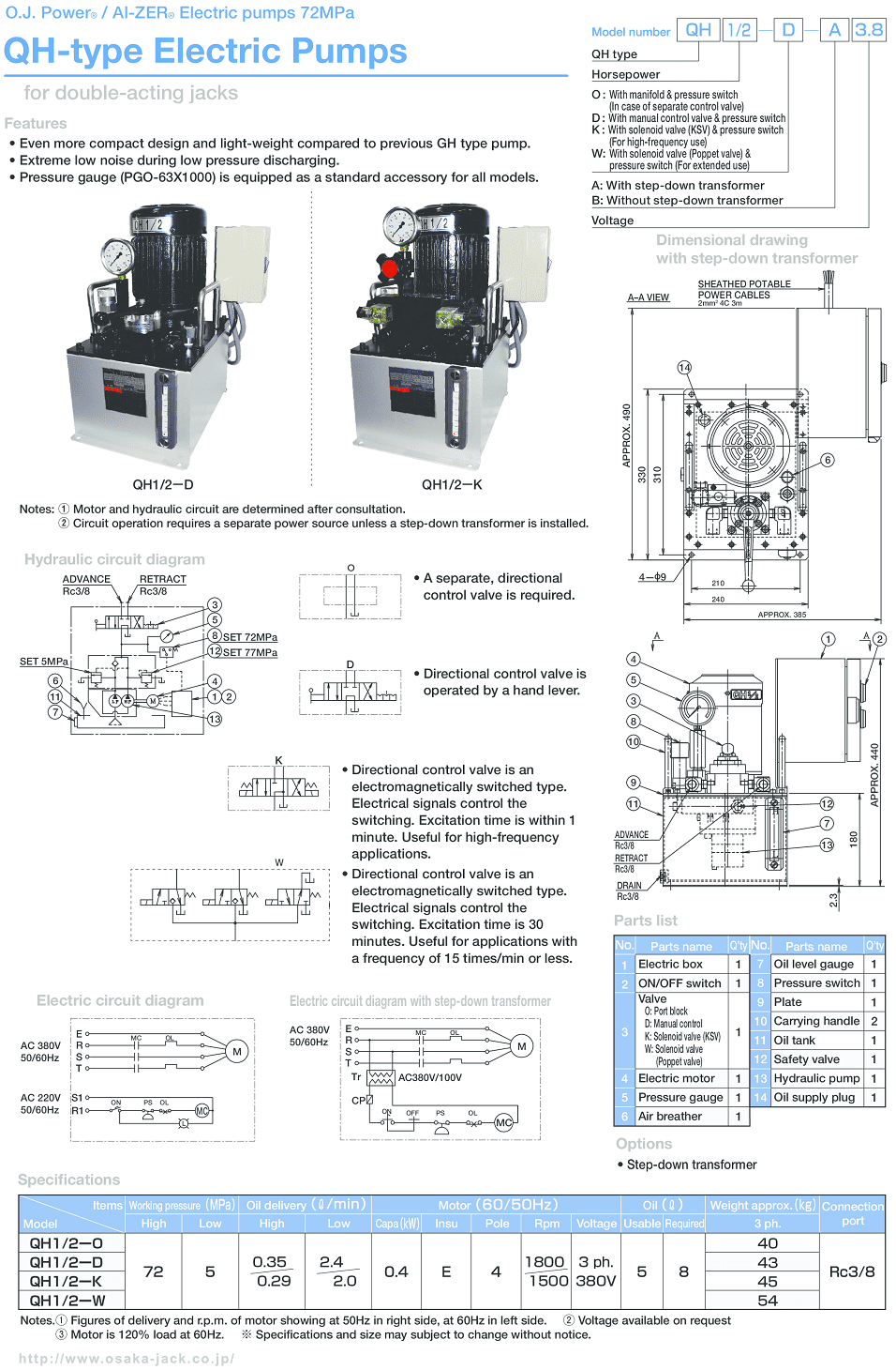 Bơm điện thủy lực Osaka QH1/2-D, Osaka electric hydraulic pump QH1/2-D thuộc dòng sản phẩm mới ra mắt của Osaka, thay thế cho dòng sản phẩm GH cũ trước đây, chuyên dùng cho kích và tools thủy lực 2 chiều trong công nghiệp.