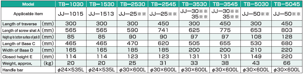 Ê TÔ TRƯỢT KÍCH CƠ KHÍ OSAKA TB-1030 | OSAKA TRAVERSING JACK TB-1030 | 10 tấn | 300 mm