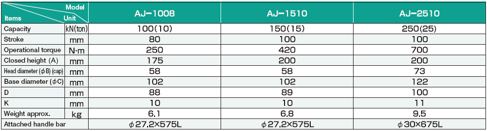Ngoài ra, kích cơ khí Osaka AJ-1008 có thể được chế tạo và lắp trên thanh ray trượt kiểu ê tô giúp dịch chuyển tải trọng cho các ứng dụng như dịch chuyển toa xe, đầu máy xe lửa trở lại vị trí ban đầu khi dịch chuyển bật khỏi ray, máy móc công nghiệp cần dịch chuyển ngang....
