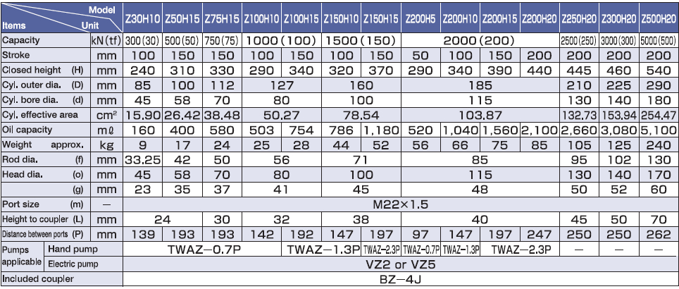 Kích thủy lực cao áp Osaka Z30H10 có áp hoạt động thuộc loại cao áp < 2.000 bar (200MPa), với coupler đặc chủng dạng bắt ren BZ-4J, cho phép kích thủy lực Osaka Z30H10 đấu nối nhanh với bơm thủy lực, thông qua ống dây, phụ kiện thủy lực.